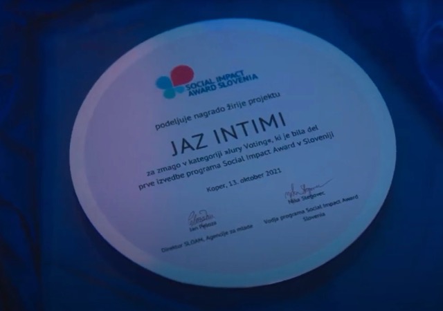 13. oktobra je v Kopru potekala zaključna slovesnost prve izvedbe projekta Social Impact Award Slovenija, ki ga v Sloveniji vodi Slovenska agencija za mlade (SLOAM). Dogodek je bil tudi del programa Evropskega tedna socialne ekonomije (ActSE 2021) v okviru slovenskega predsedovanja Svetu Evropske unije. Pogovarjali smo se z ekipo Jaz Intimi, ki jo sestavljajo Julia Hlede, Tjaša Kos in Katja Brečko in je prejela nagrado strokovne žirije v kategoriji “glasovanje strokovne žirije”.